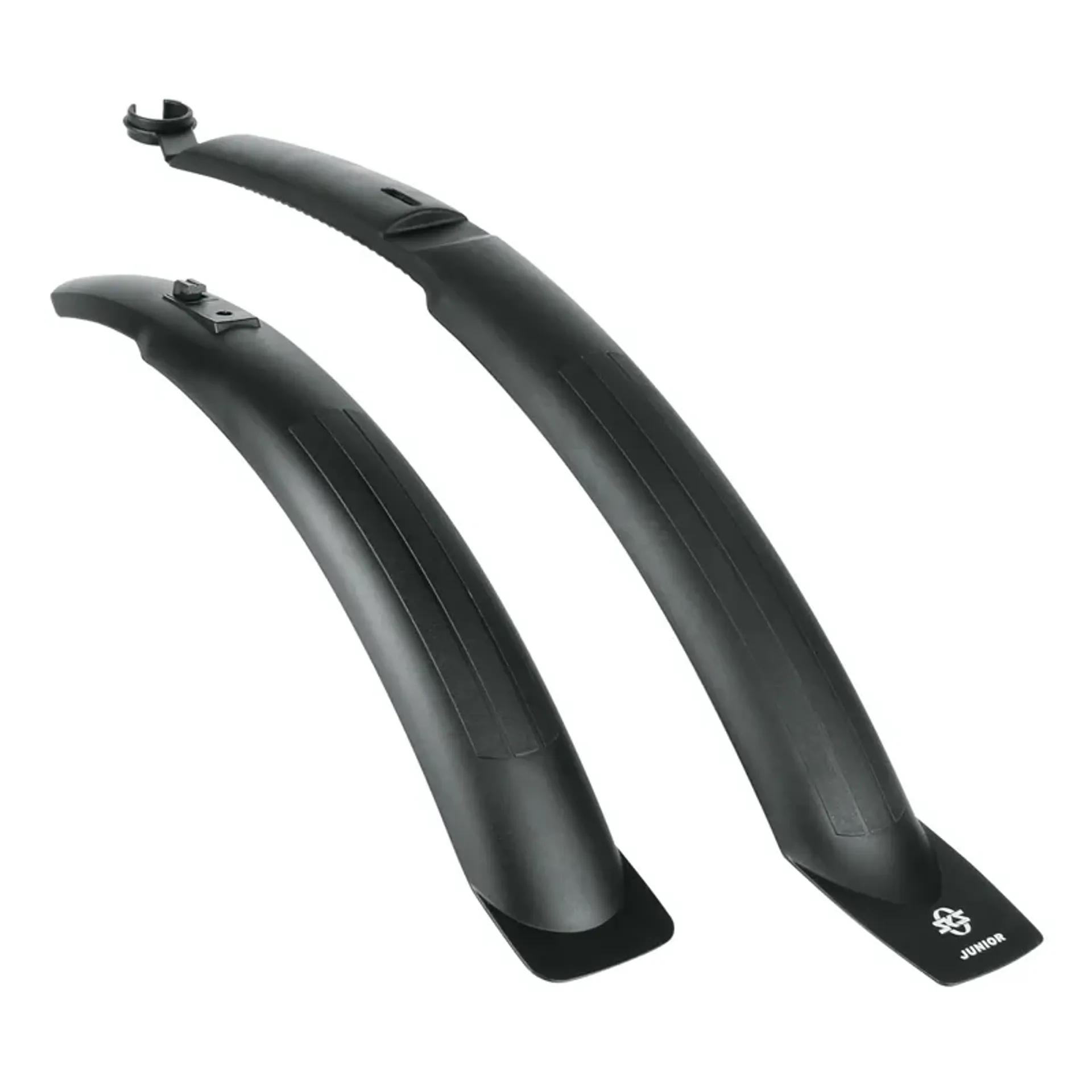 Snap-on front and rear mudguard set for 20” wheels, including universal fastening and frame clip.